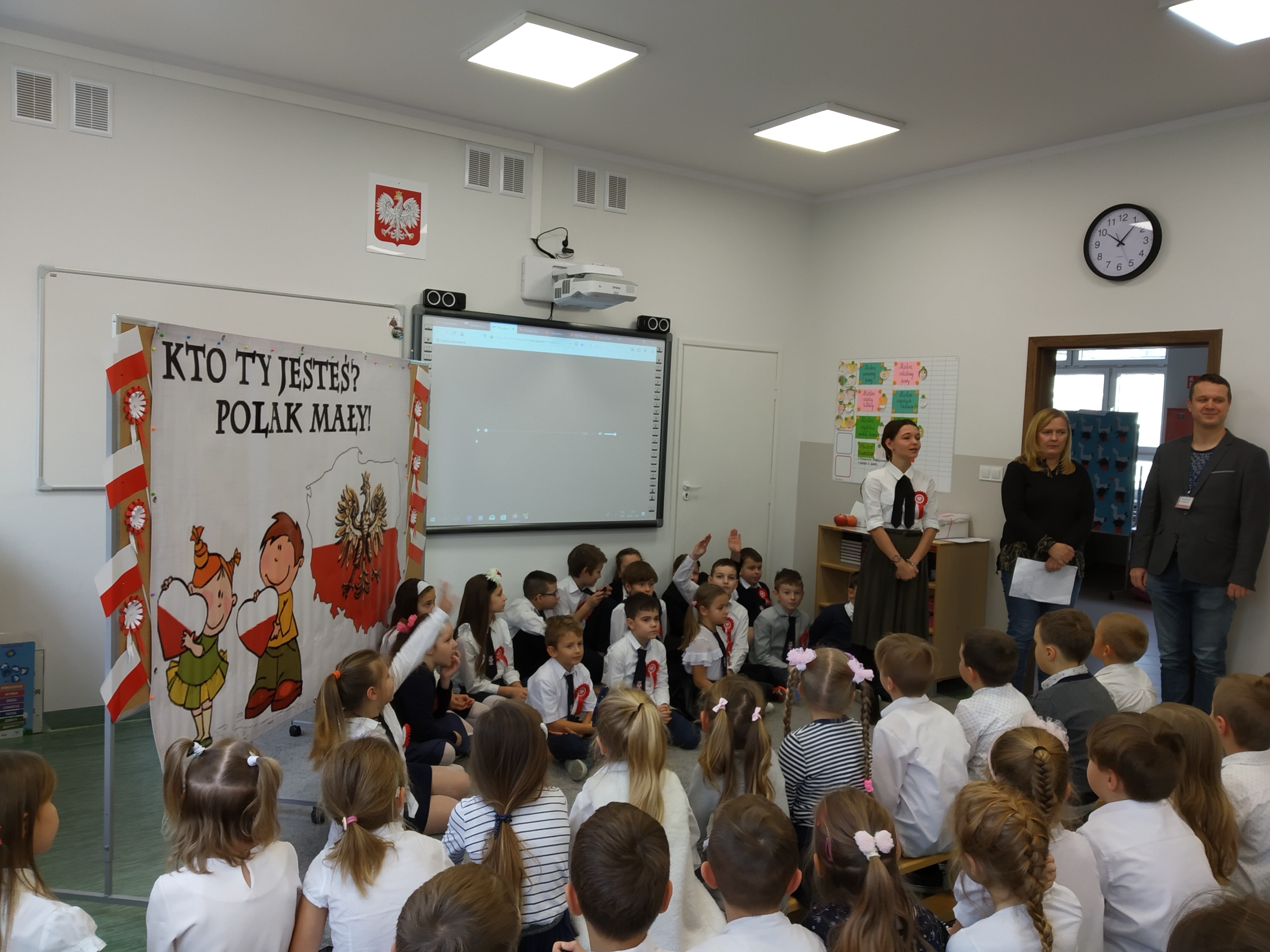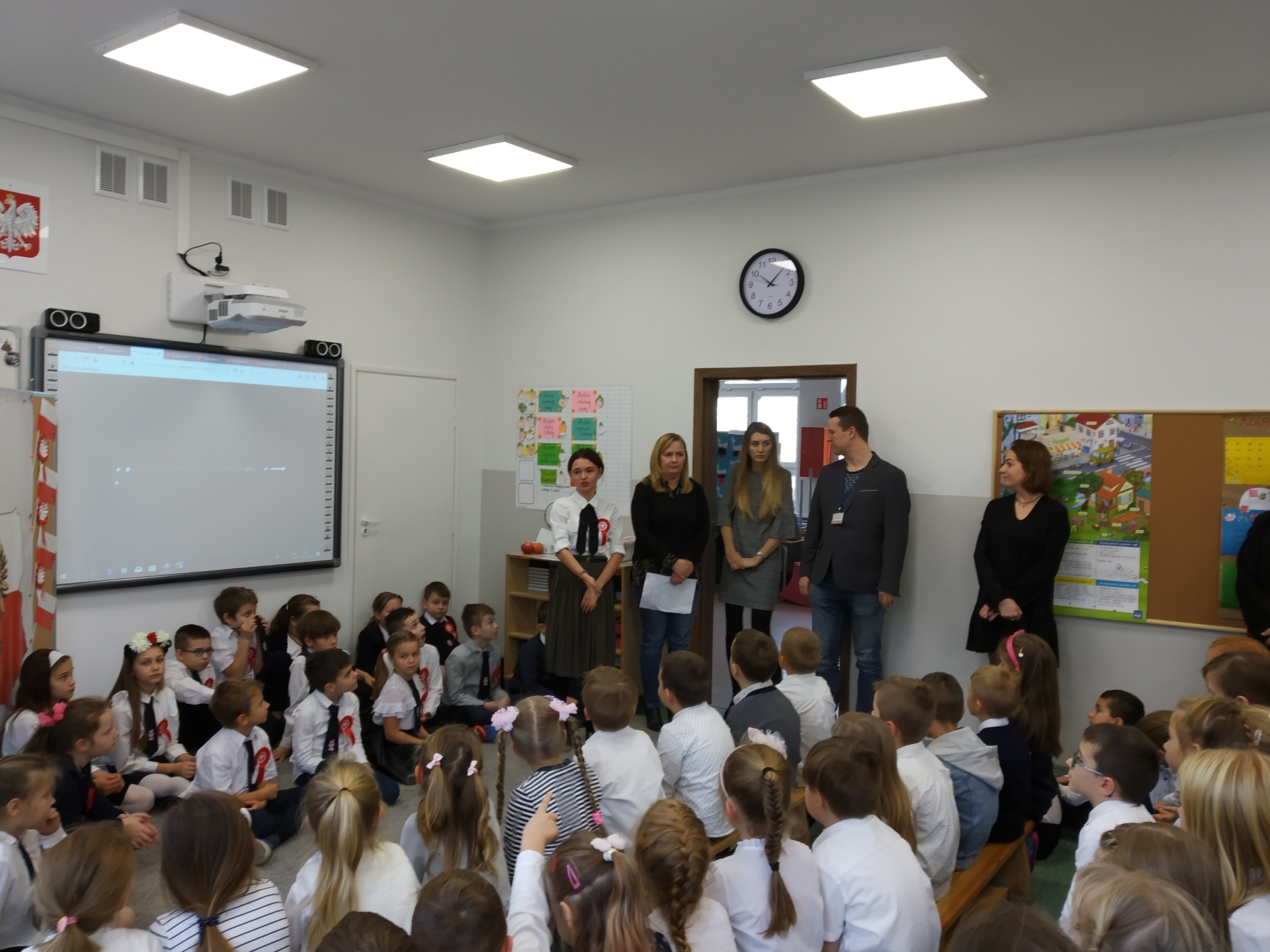 Święto Niepodległości10 listopada 2019 w Non classé przez ZSO4 8 listopada obchodziliśmy w naszej szkole Święto Niepodległości. Uzniowie klas 0-3 uczestniczyli w uroczystym apelu z okazji 101 rocznicy odzyskania niepodległości. Wszyscy w skupieniu wysłuchali wierszy i pieśni patriotycznych. Share on Facebook Share Share on TwitterTweet