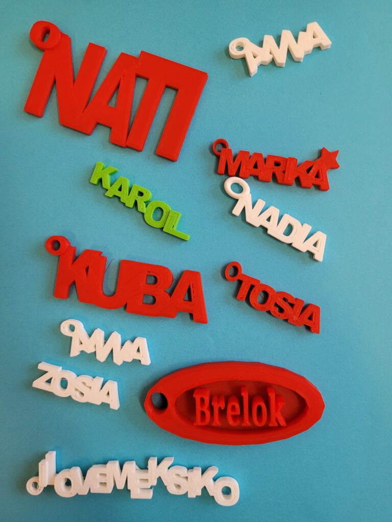 Uczniowie klasy 7 pogłębiali swoje umiejętności w projektowaniu 3D, czego efektem są breloczki wydrukowane w naszej pracowni.