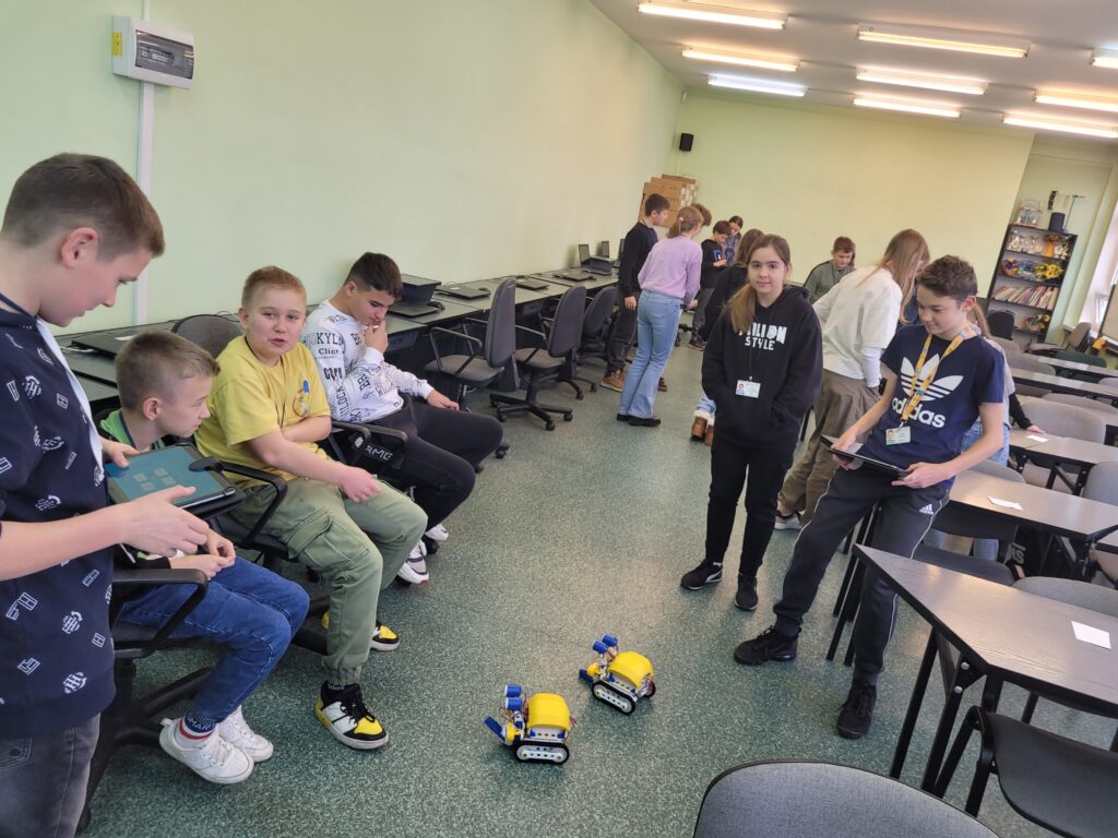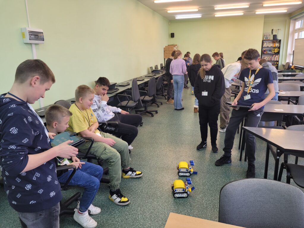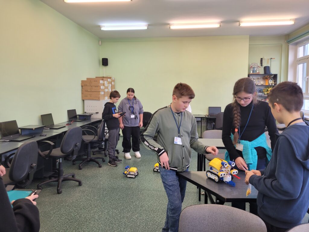 Montaż SkriBotów wymagał cierpliwości, dokładności i zaangażowania. Ale wreszcie nadszedł oczekiwany moment uruchomienia robotów. Uczniowie sprawdzali mobilność „żuczków” sterując nimi w trybie Pilot.