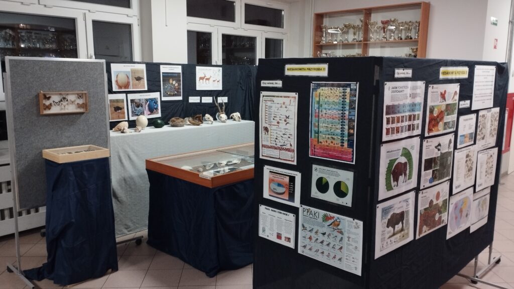 Wystawa mieści się w holu korytarza na pierwszym piętrze, naprzeciwko pokoju nauczycielskiego. Pomógł mi ją zorganizować i przygotować od strony technicznej Inny nauczyciel naszej szkoły – Pan Michał Ikert, wspaniały nauczyciel historii.