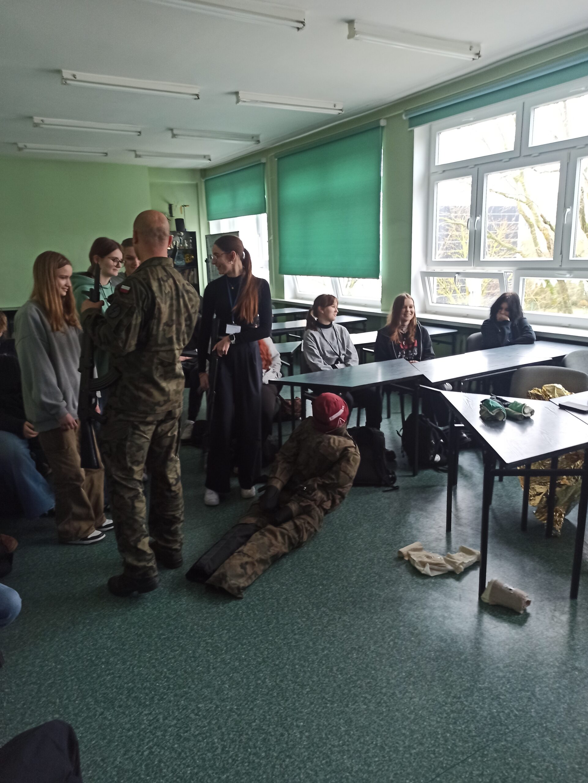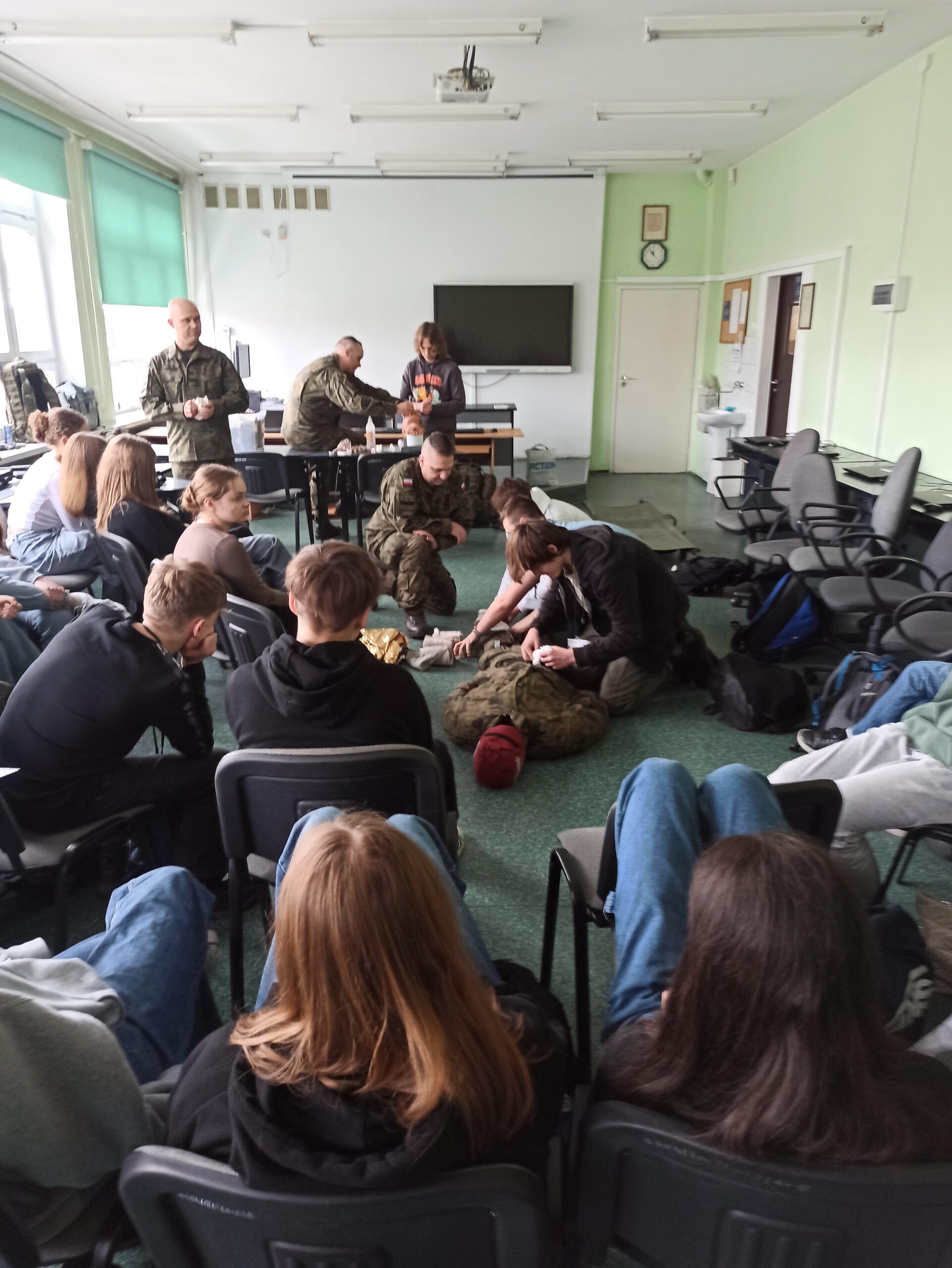 Ponadto, uczniowie zdobywali także umiejętności w zakresie bandażowania ran oraz zakładania stazy taktycznej, co pozwala na kontrolę krwawienia i zapewnienie stabilizacji poszkodowanego. Kolejnym ważnym elementem warsztatów było zabezpieczanie oraz transportowanie poszkodowanych, co jest nieodłączną częścią procesu udzielania pomocy medycznej w warunkach terenowych.