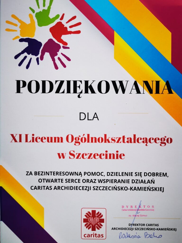 11 czerwca 2024 r. w siedzibie Caritas Archidiecezji Szczecińsko-Kamieńskiej obyła się III Mini Gala Wolontariatu zorganizowana przez szczecińską Caritas. Podsumowano na niej działania wolontariuszy wciągu roku szkolnego i wręczono nagrody dla najbardziej aktywnych grup. Wśród nagrodzonych byli wolontariusze LO XI. Podsumowanie działalności odbyło się też na terenie szkoły przy pizzy, a wśród uczestników tego spotkania byli: dyrektor i koordynator działań wolontariackich Caritas, dyrektor i z-ca dyrektora DK Słowianin oraz uczniowie i nauczycie SOSW 2.