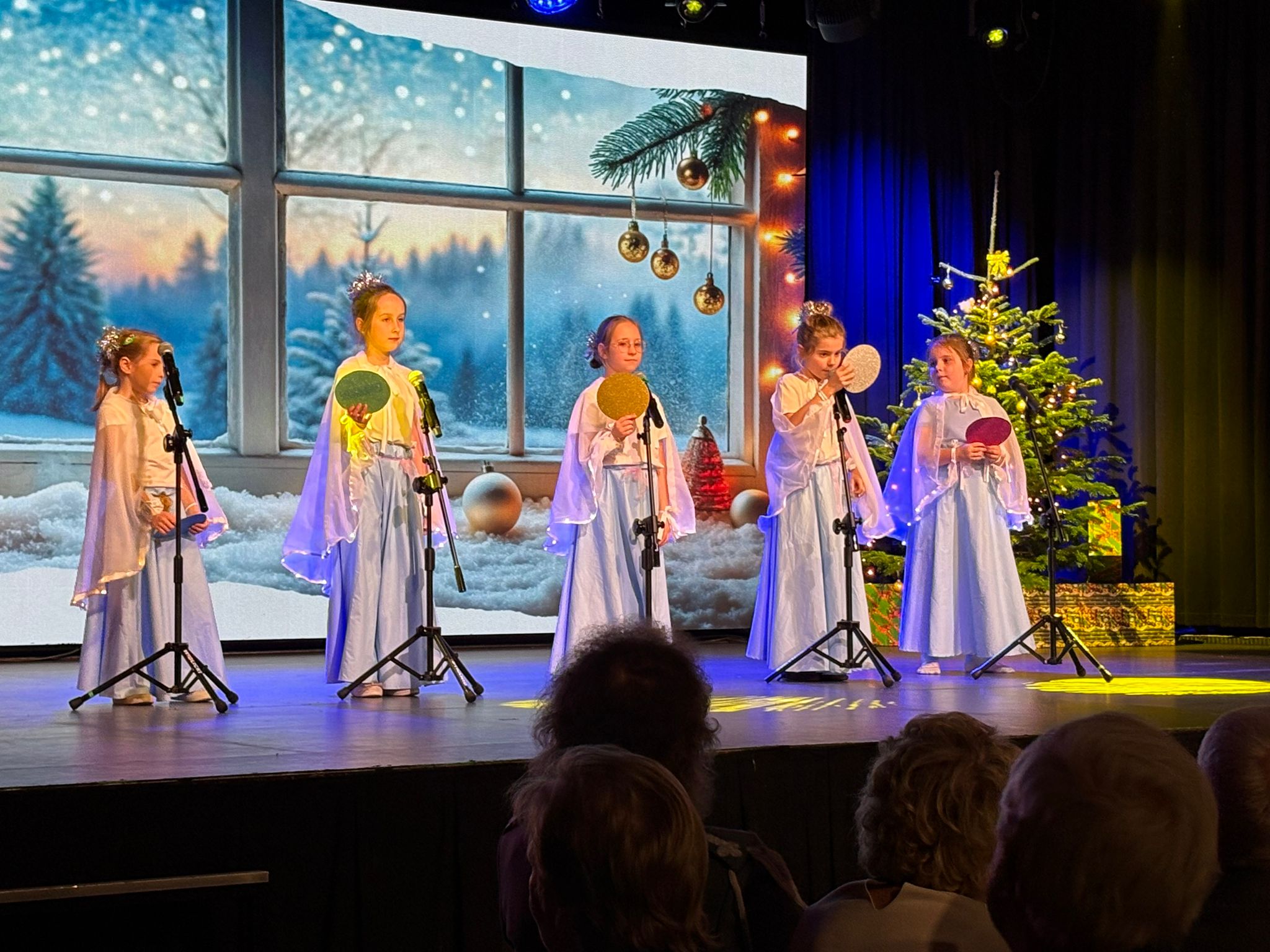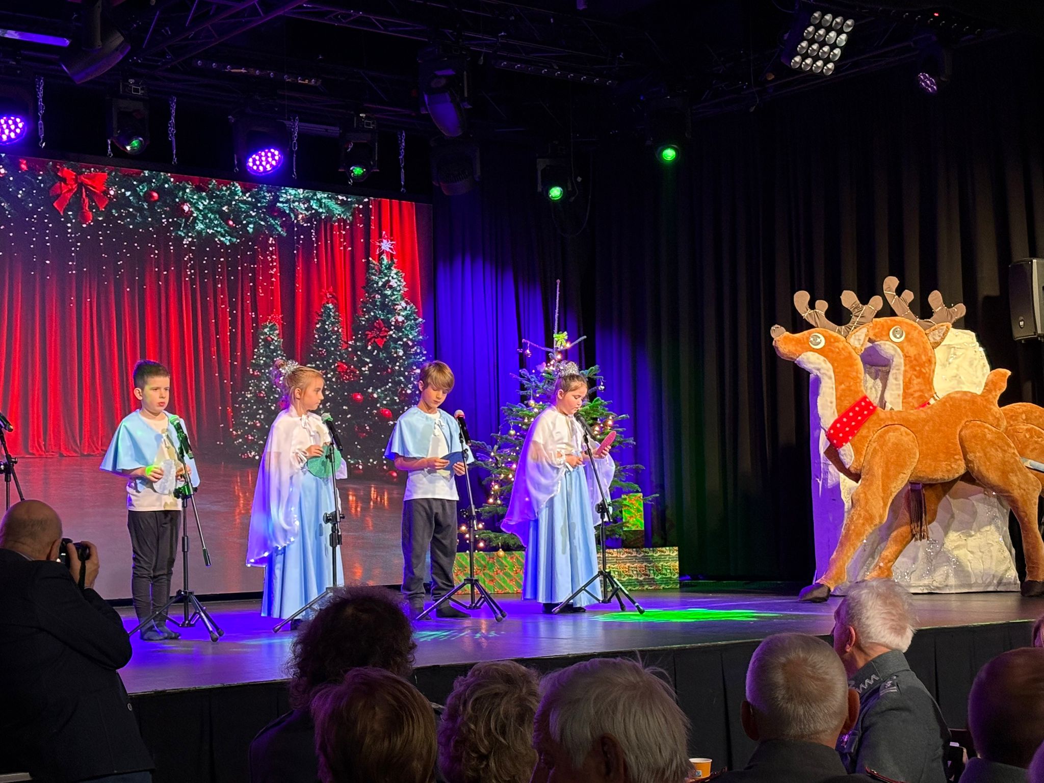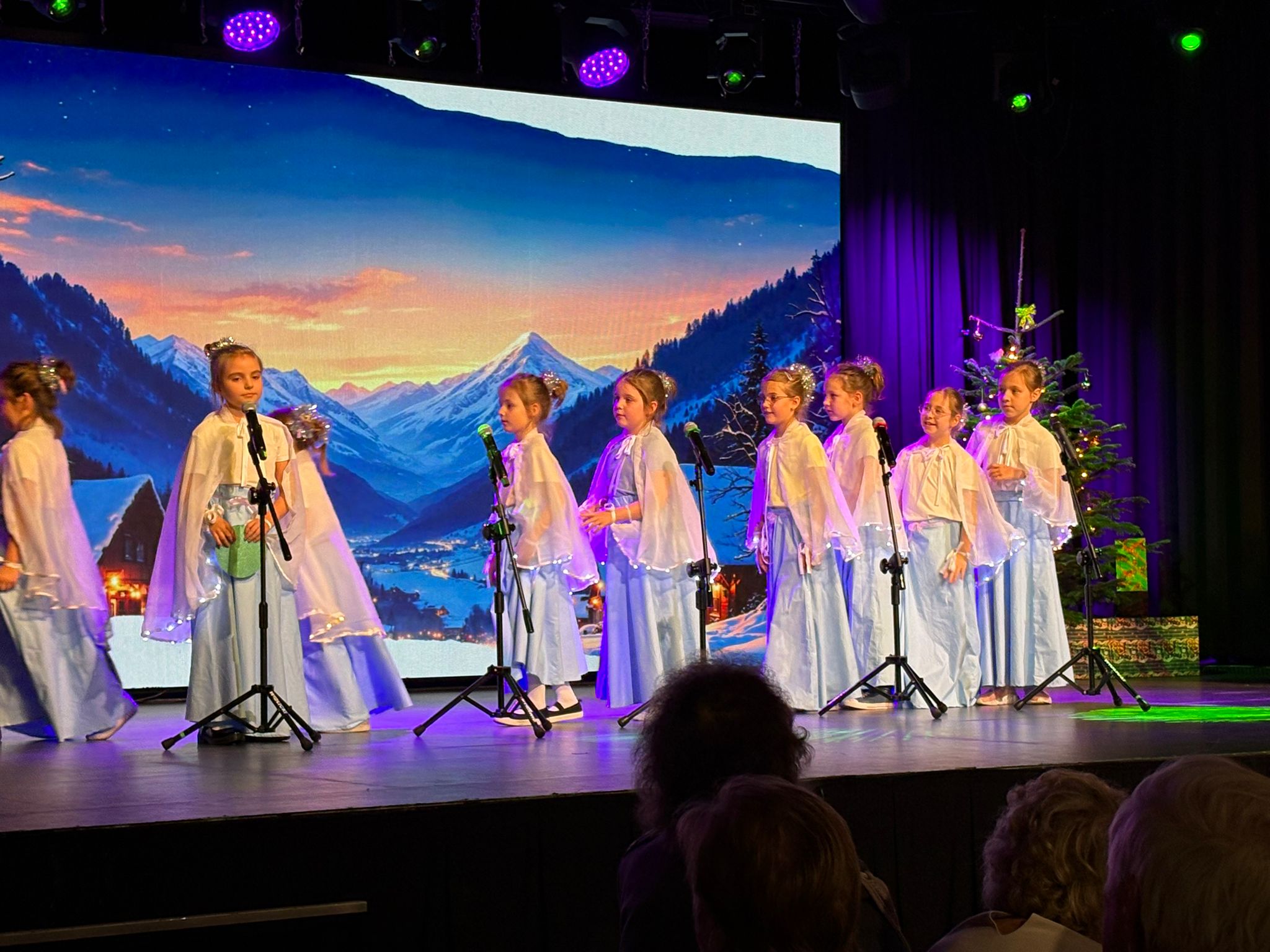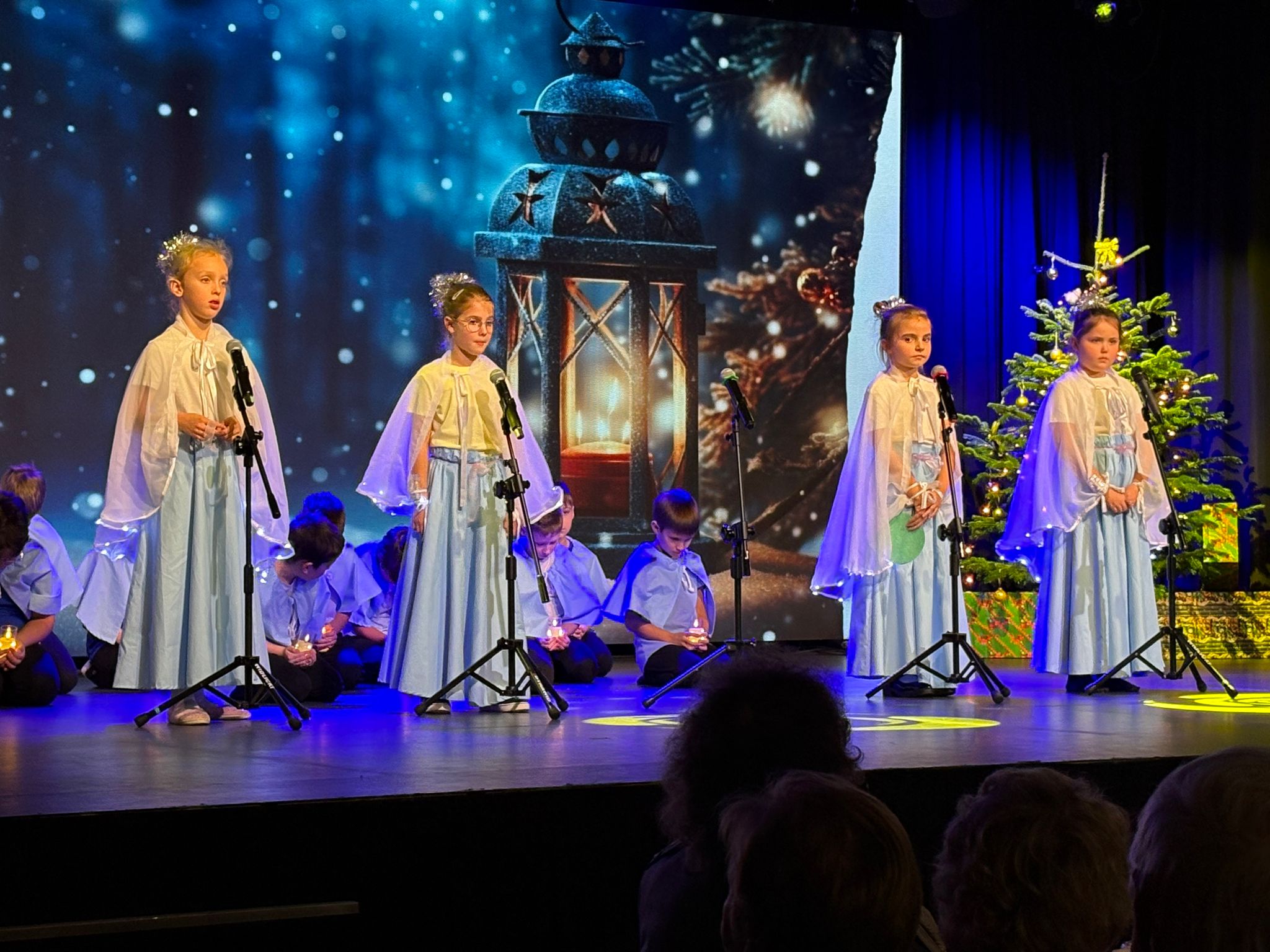 Na zdjęciach widnieją uczniowie występujący podczas koncertu świątecznego.