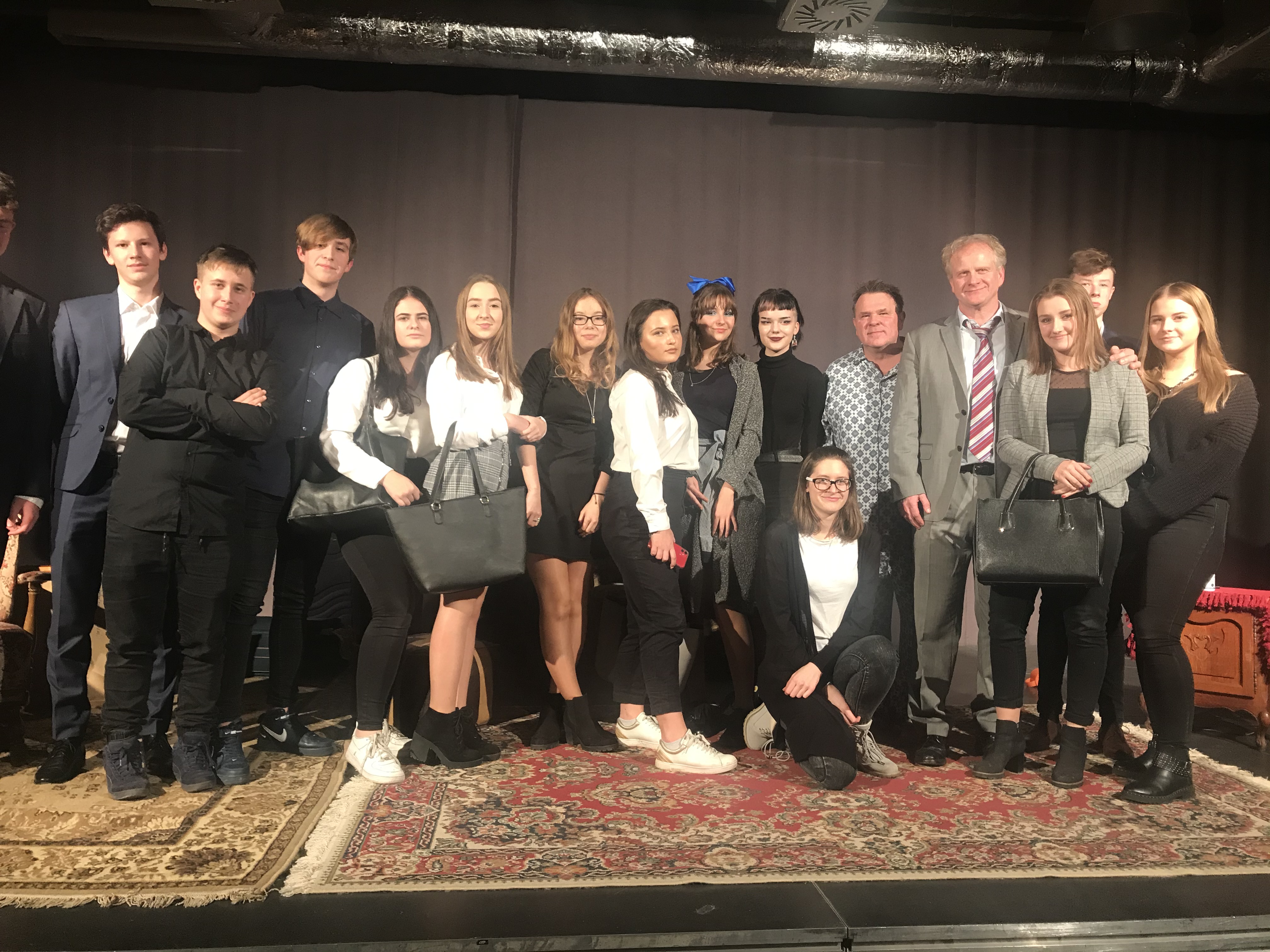 10.12.2019 r. uczniowie klas licealnych wraz z opiekunami S. Pańczuk -Mura i M. Kryk, uczestniczyli w spektaklu teatralnym zrealizowanym przez Scena Stara Rzeźnia pt.: „Pół na pół” której autorami są Jordi Sanchez i Pep Anton Gomez. Cytując p. Małgorzatę Frymus ” To historia o nas, o naszych relacjach z najbliższymi, o tym co jest ważne i gdzie jest granica przyzwoitości, o ile w ogóle jest… Do czego jesteśmy zdolni, kiedy nasza mała stabilizacja jest zagrożona? O tym wszystkim opowiada, w niezwykle błyskotliwym dialogu, pełna zaskakujących zwrotów akcji, sztuka dwóch hiszpańskich autorów…