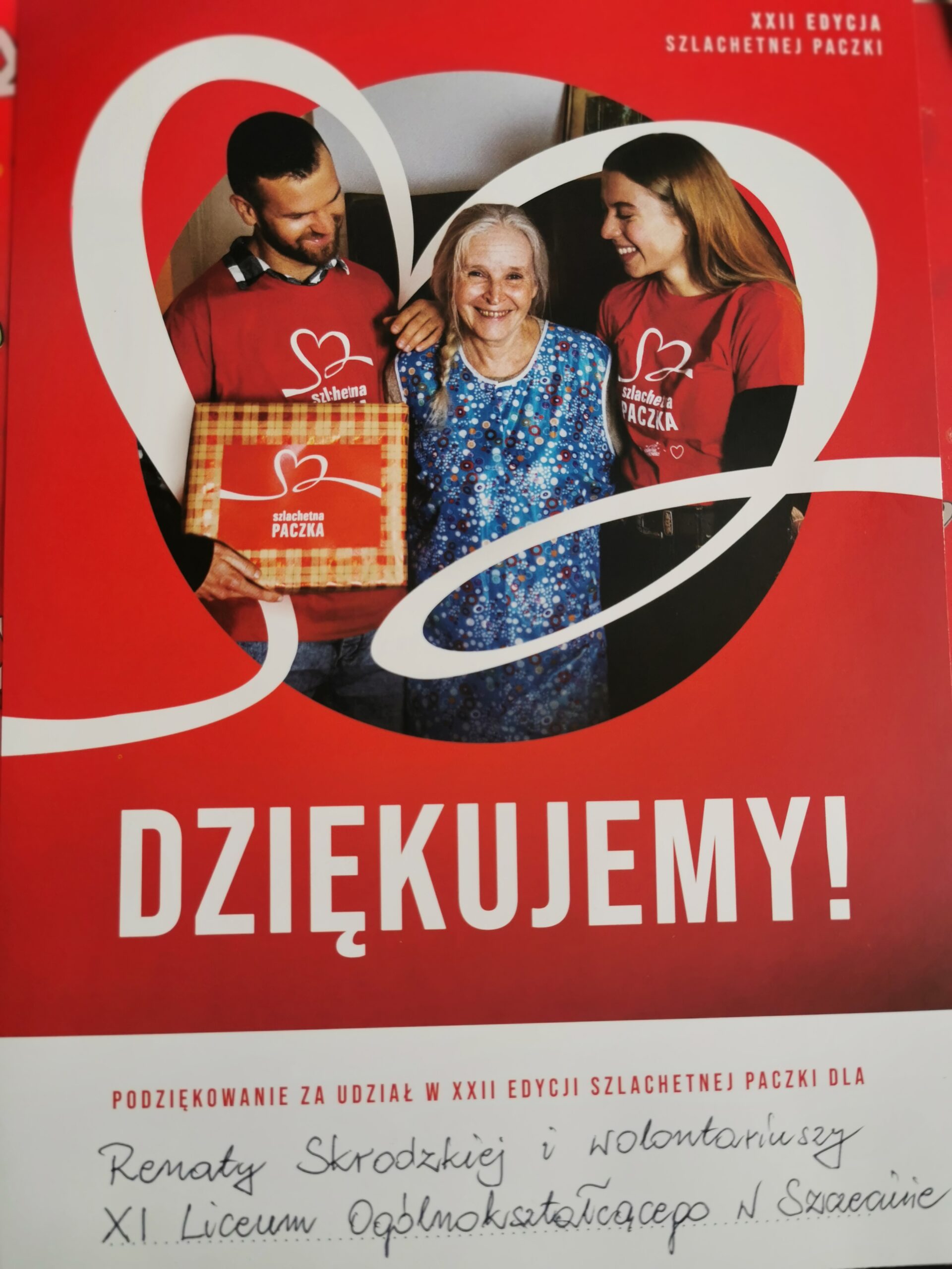 W dniu 10.12.2022r. wolontariusze naszej szkoły wzięli udział w ogólnopolskim projekcie społecznym, organizowanym przez Stowarzyszenie Wiosna – Szlachetna Paczka, którego celem jest pomoc rodzinom i osobom znajdujących się w trudnej sytuacji życiowej. W takiej sytuacji jest Pani Marzena ze Szczecina, chorująca na reumatoidalne zapalenie stawów, które utrudnia jej codzienne życie. Przez dwa tygodnie zbieraliśmy pieniądze od uczniów, rodziców i nauczycieli Zespołu Szkół Ogólnokształcących Nr 4, aby móc za zebrane środki kupić długoterminową żywność, środki czystości oraz mikrofalówkę, o którą prosiła szczecinianka a także sprawić dodatkowo dla niej świąteczny upominek.