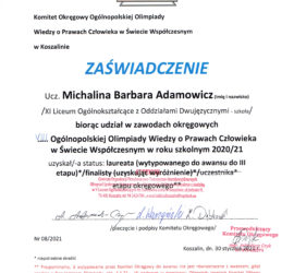 KONKURS FOTOGRAFICZNY/FILMOWY – „FIZYKA, TO LUBIĘ” Miło nam poinformować, że w konkursie Fizyka, to lubię! organizowany jest przez Wydział Fizyki Uniwersytetu Warszawskiego nasza uczennica Daria Górska z klasy 2LAp zajęła 2 miejsce w kategorii „Film przedstawiający eksperyment fizyczny”. Serdecznie gratulujemy Darii. […]